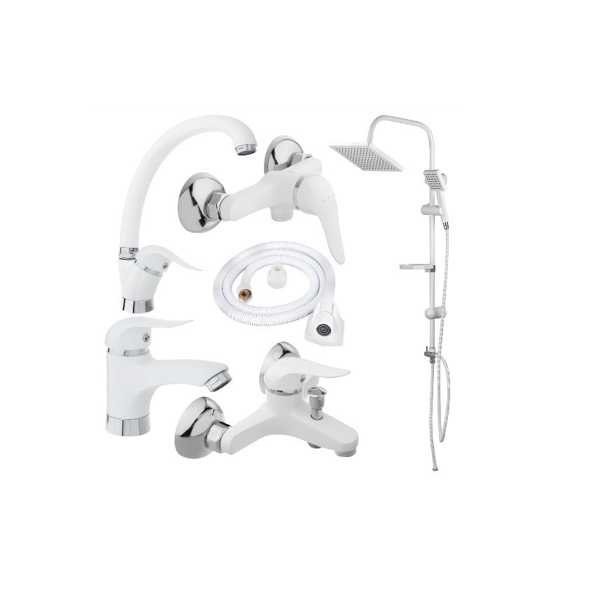 ست شش تیکه شیرآلات تیرداد مدل مروارید سفید کروم به همراه دوش دو کاره و شیلنگ توالت