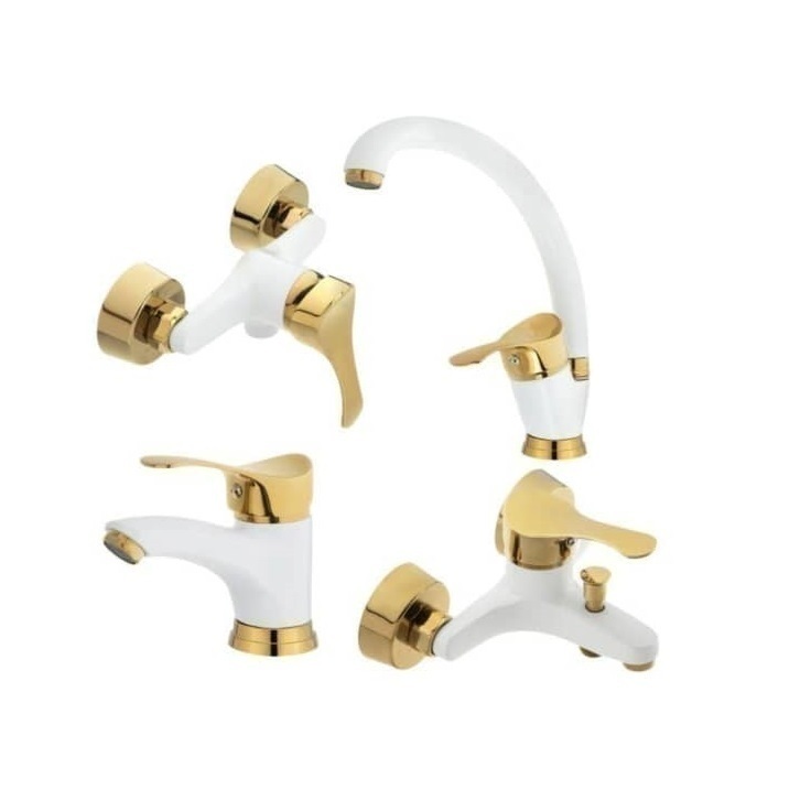ست شیرآلات تیرداد مدل لاله سفید طلایی